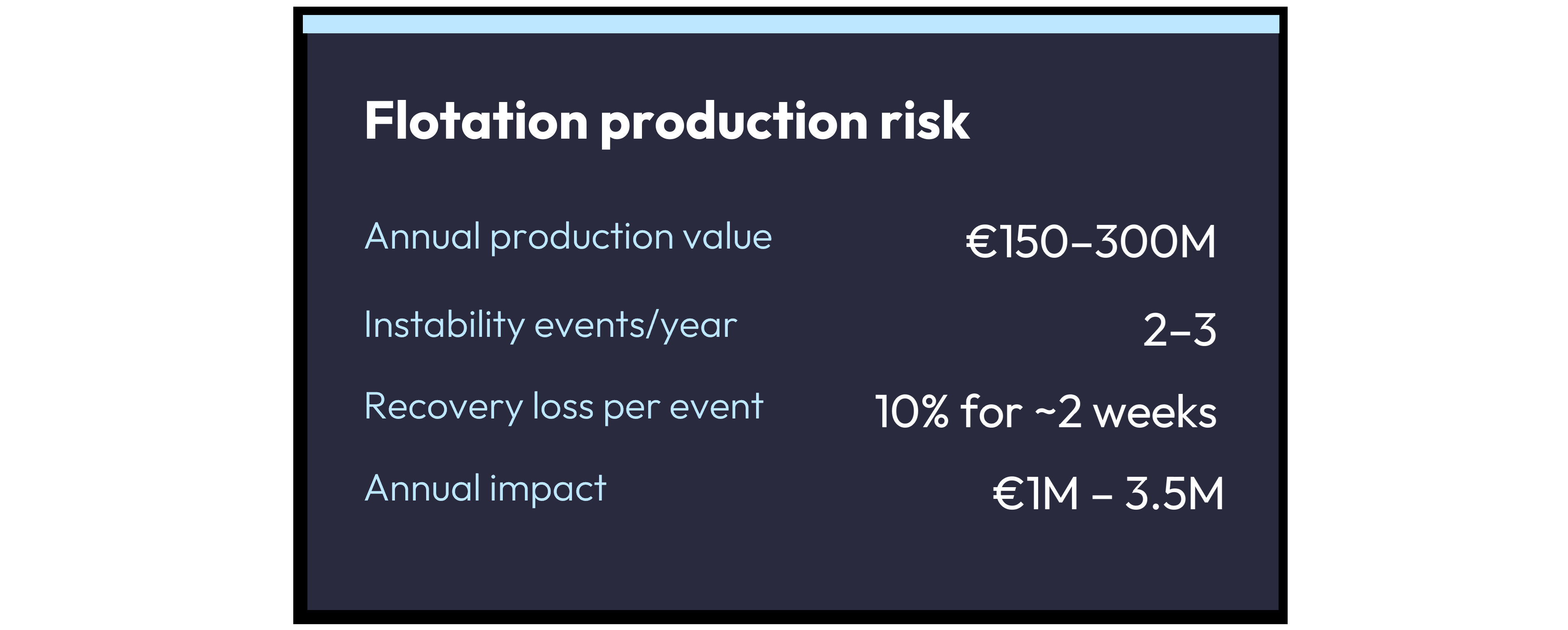 In a typical flotation operation, even short periods of instability can have a measurable financial impact. Example of potential impact: